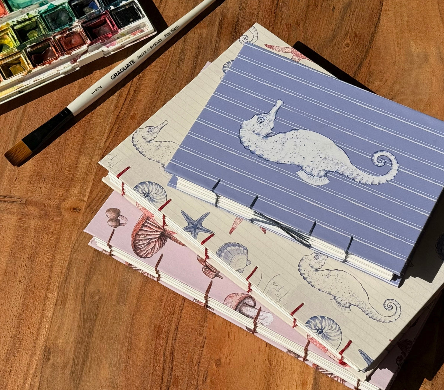 A6 Watercolour Sketchbook - Stripy Seahorse Design