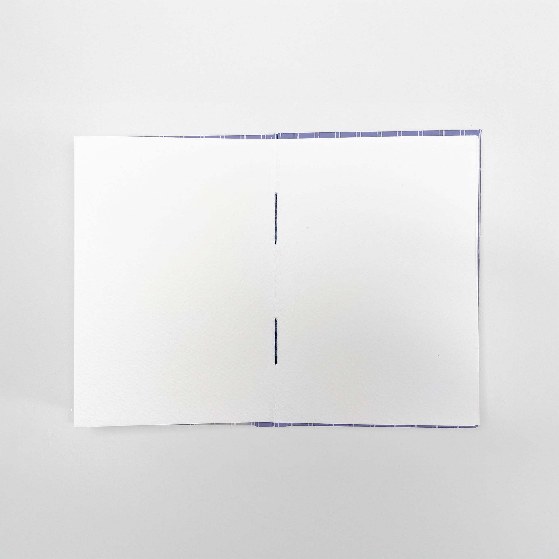 - Handbound: Exposed blue bow-design stitching feature along the spine