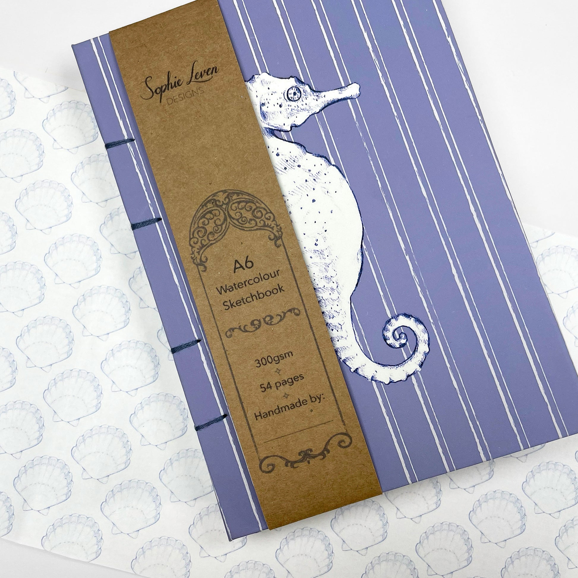 A6 Watercolour Sketchbook - Stripy Seahorse Design