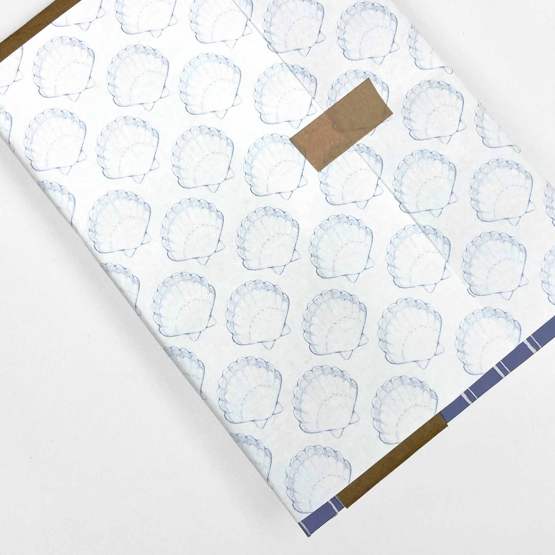 - Inside pages: Soft seashell pattern on front and back pages with space to add contact information